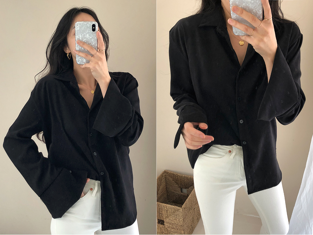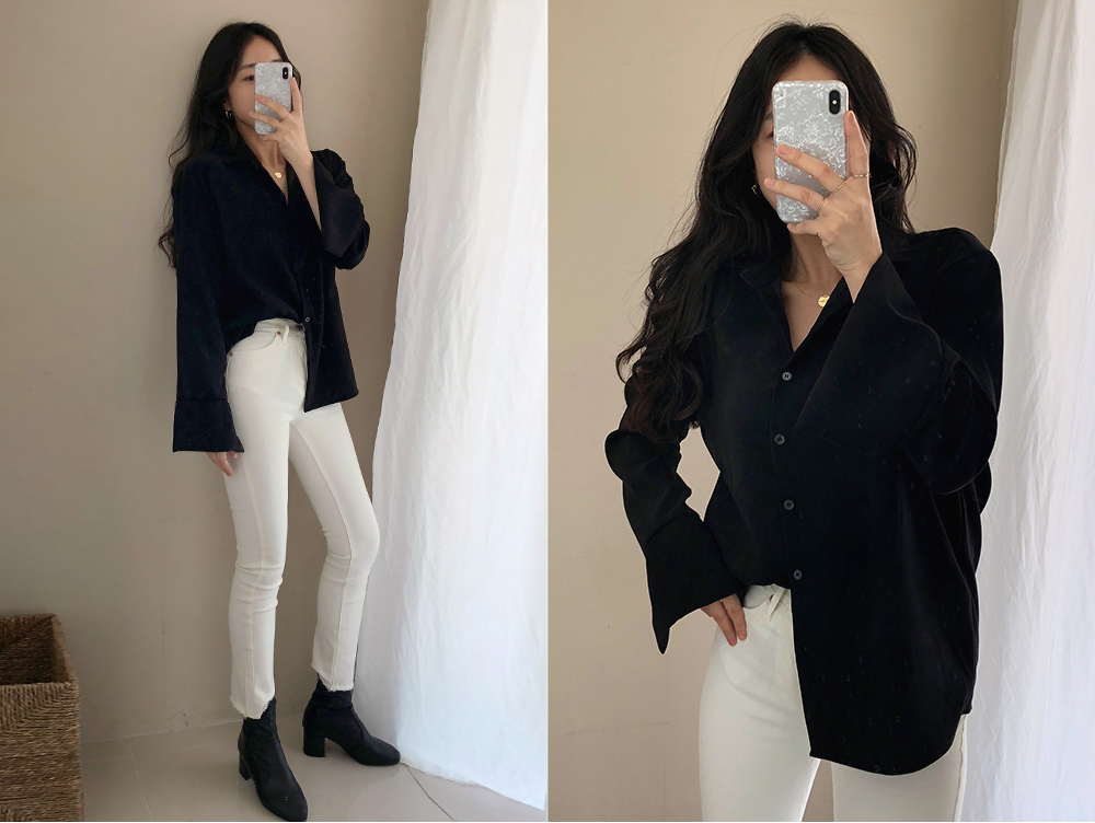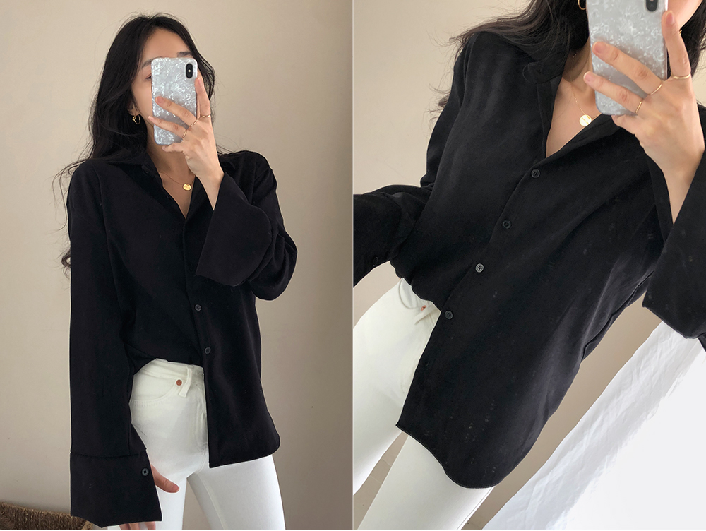 모두 여밈해 깔끔한 기본 셔츠핏으로 입으시거나