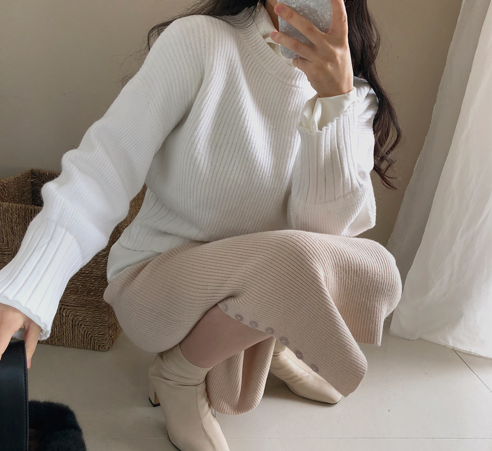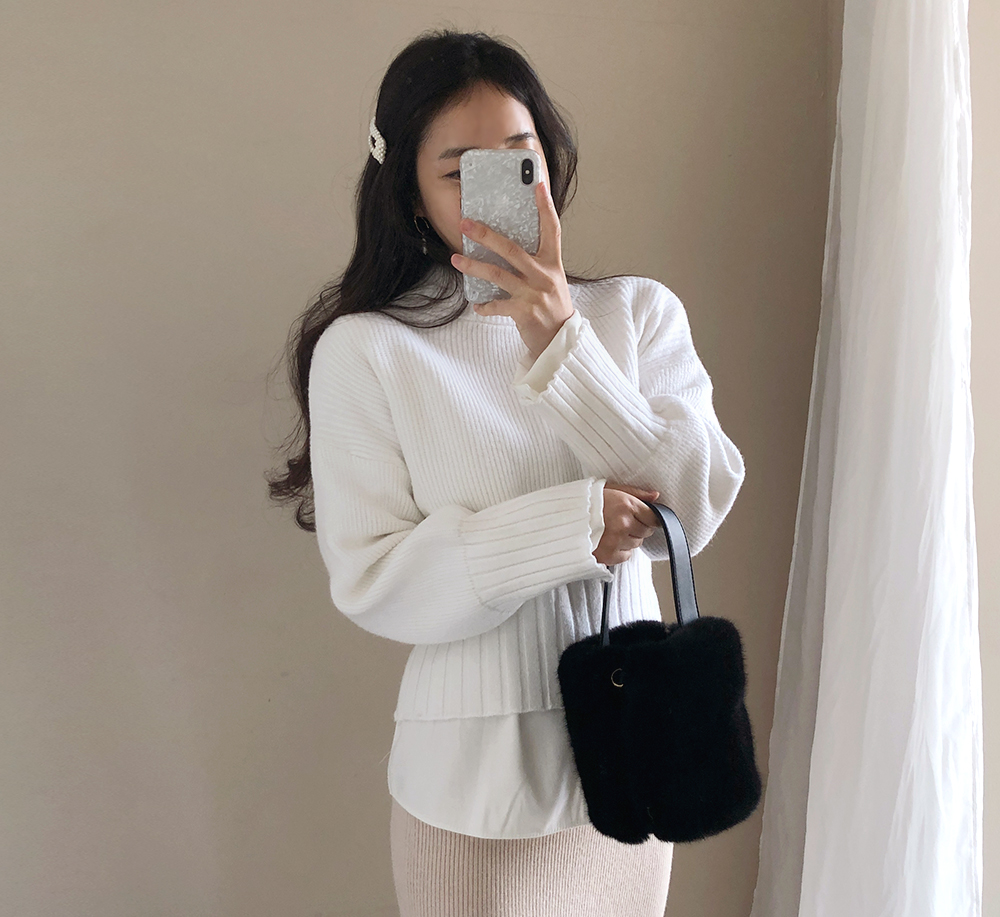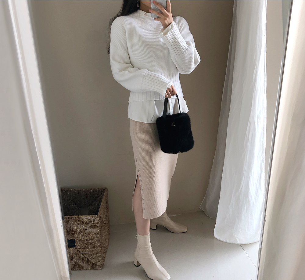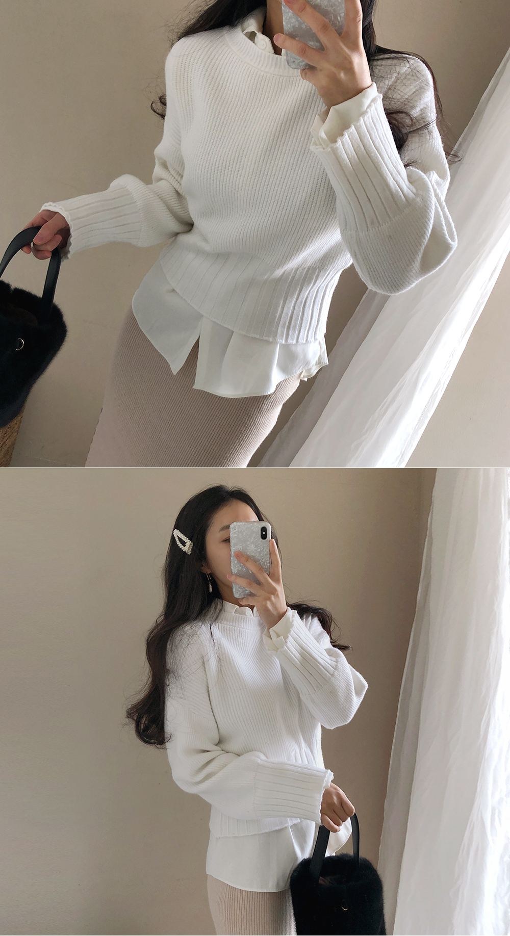 편안한 코디연출로, 소맷단을 살짝 올려 퍼프소매처럼