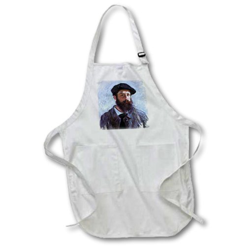 3dRose Self-Portrait with A Beret, Claude Monet Painting Dated 1886, PD-US - Full Length Apron, 22 by 30-Inch, black, with Pockets (apr_179217_4)