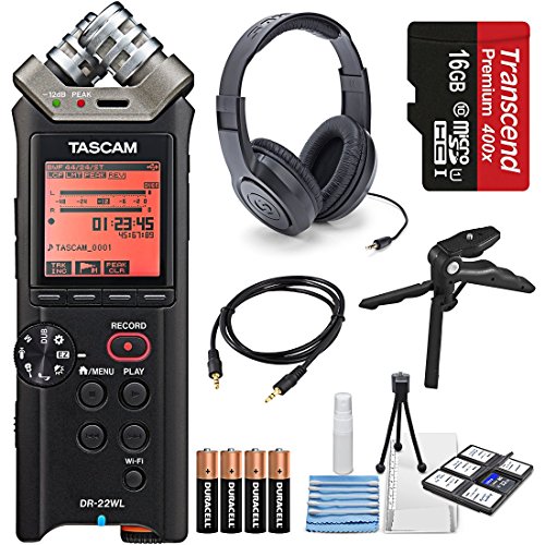 Tascam DR-22WL Portable Handheld Recorder with Wi-Fi, 16GB MicroSD Card Along with Deluxe Accessory Bundle and Cleaning Accessories