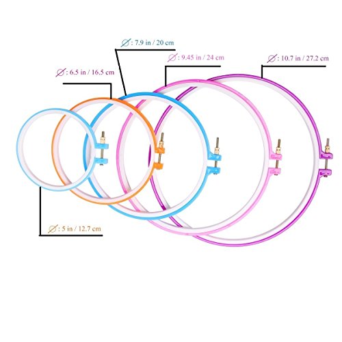 - MULTIPLE SIZES!- Comes complete with the most popular sizes to suite your needs. Hoop sizes range from 11.22 inches (28.5cm), 9.44 inches (24cm), 8.07 inches (20.5cm), 6.49 inches (16.5cm) and 5 inches (12.7cm)