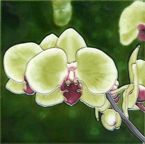 Continental Art Center BD-2089 8 by 8-Inch Two White Orchids with Purple Center In Green Background Ceramic Art Tile