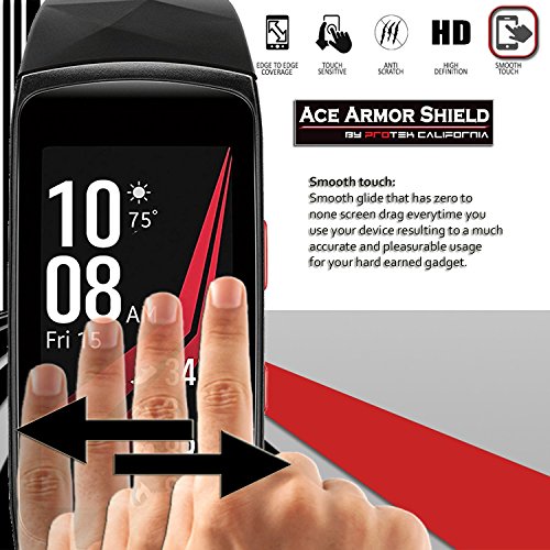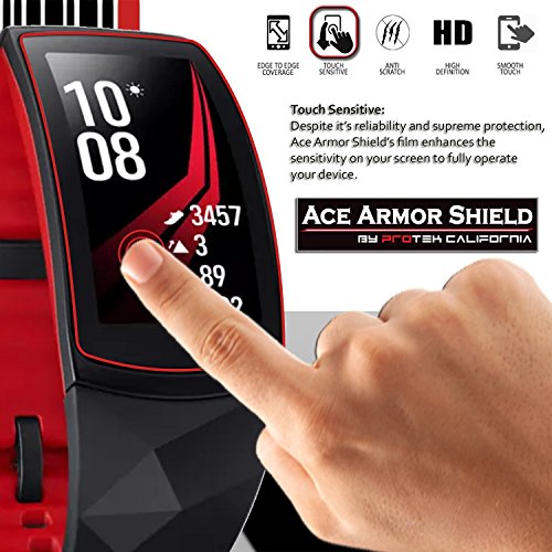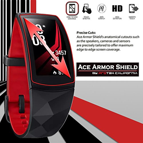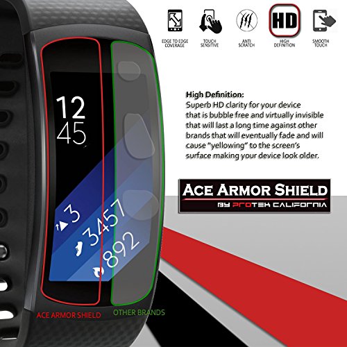 -. Binding : Wireless Phone Accessory -. Brand : Ace Armorshield -. Color : Clear, Transparent -. EAN : 0684031691958 -. Feature : Engineered and Meticulously made for your Samsung Gear Fit 2 Pro / Flexible film that conforms to any rounded curvatures that will never crack unlike tempered glass that are known to be brittle and mostly undersized. / Unique liquiform error free installation method that allows the user to align the cut outs and edges properly onto your device. Perfect for your water resistant device . ProTek Guard also features underwater abrasion resistance compared to the "static cling" tempered glass that you have to replace often. / Bubble free means Supreme 99.9% HD Clarity that is virtually invisible backed with our Free Replacement Warranty. / Protection, Reliability, Longevity, Affordability and Commitment is what we offer. What's stopping you from getting your Ace Armor Shield today? -. Label : Ace Armor Shield -. Manufacturer : Ace Armor Shield -. Model : SR5489 -. PackageQuantity : 6 -. ProductGroup : Wireless -. ProductTypeName : WIRELESS_ACCESSORY -. Publisher : Ace Armor Shield -. Studio : Ace Armor Shield -. Title : Ace Armor Shield Samsung Galaxy Gear Fit 2 Pro Screen Protector (6 PACK) -. UPC : 684031691958 -. Warranty : 15 days warranty money back guaranteed
