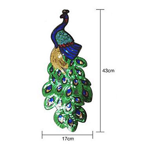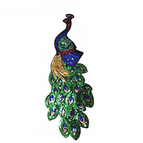-. Feature : Material:Green Sequin Embroidery Peacock(Need Sew) / Size: 24*64.5 CM / The patches can be used for mending, reinforcing and decorating your jeans, shirt, coat, dress, bags and other applications. / You can sew the patches on the cloth then you can remove it easily. / Package Include: 1 x DIY Fabric Sticker