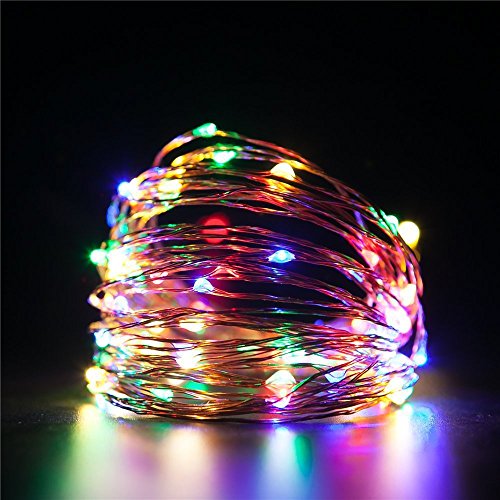 2 Pack of 33Ft 100 LED Battery-Operated Fairy Lights - Multicolor/Copper Wire. each string light is with 33 feet moldable copper wire and 100pcs glowing micro Leds;along with 1 remotes to control the lights wirelessly.You can use them to decorate your wedding ceremony, Halloween party; DIY unique dinner party centerpiece;apply for your crafting project;making twinkling bonsai/plants arrangement.