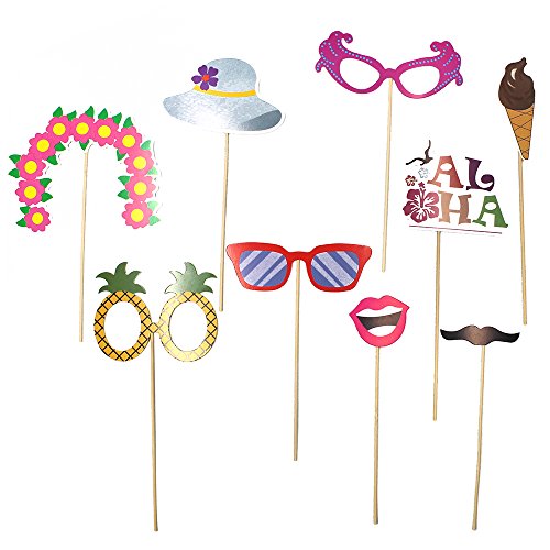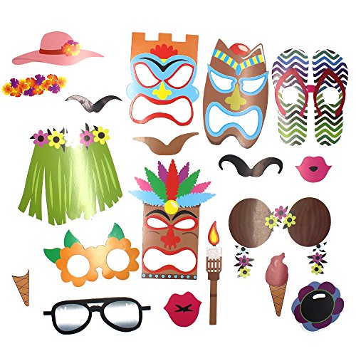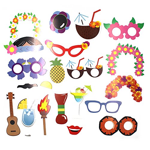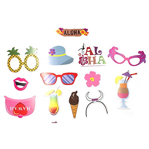 KisSealed Luau Hawaiian Photo Booth Props DIY Kit for Party,Holiday,Wedding and More,52 Pieces