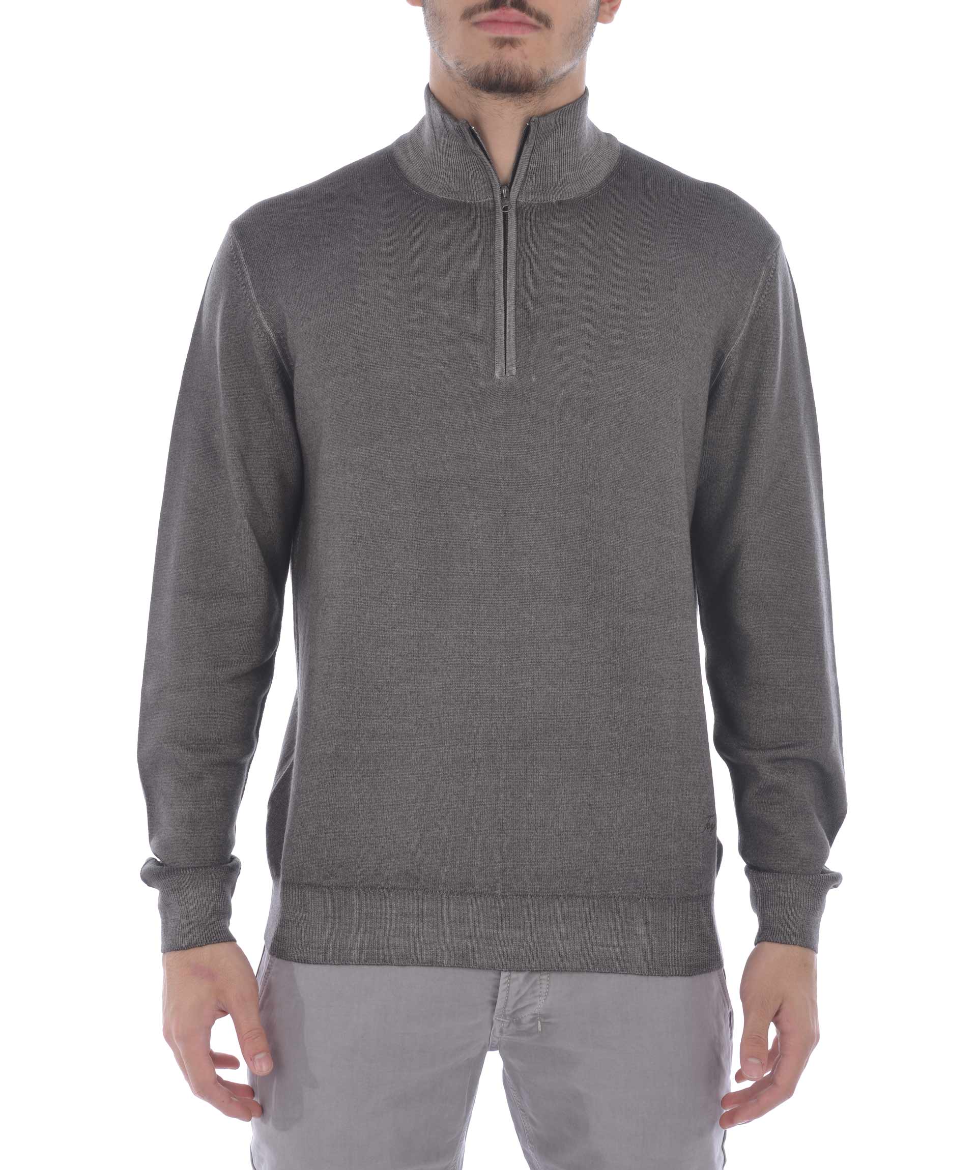 Lupetto Fay in lana rasata Tortora. Mezzo collo con chiusura zip. Manica lunga. Polsi e fondo a costine. Logo frontale ricamato. Misura in foto 48 100% lana vergine