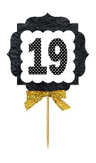 19th Birthday / Anniversary Gold Ribbon Hand Crafted Novelty Cupcake Decoration Toppers / Picks -12ct