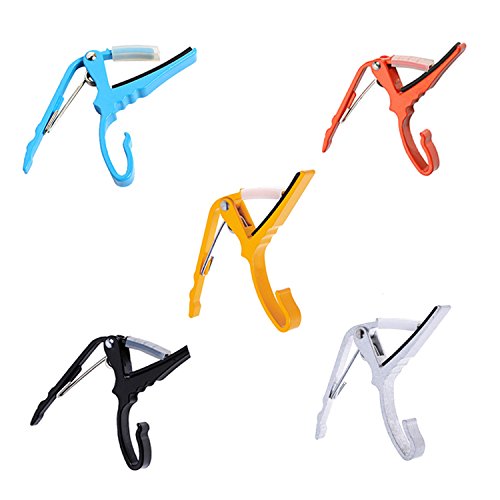 Studio : Kmise Publisher : Kmise Binding : Electronics Product Description 100% brand new, high quality and testing is fine Fits comfortably in your hand Specially designed for electric or acoustic guitars Hold the strings nice and tight Quickly and easily released and repositioned without disturbing the tuning Color: Black? Blue?Red? silver? Y allow Package Includes: 5 ? x guitar capo 0