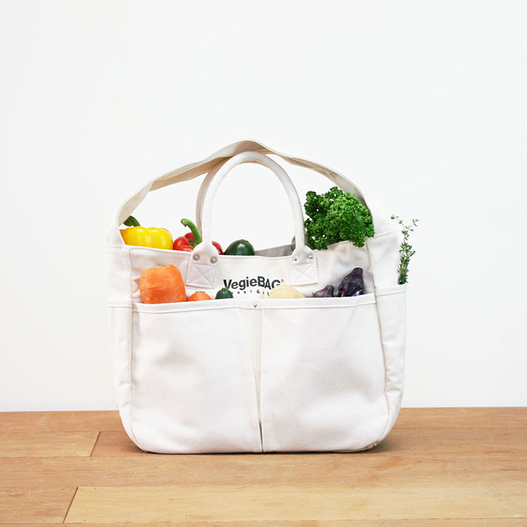 気軽に持ち運べるベジバッグラフ。 芯材が入っていない柔らかな生地は、体にフィットする嬉しい軽量トートバッグ。 A4サイズの雑誌も入る飽きのこない定番の使いやすい形。