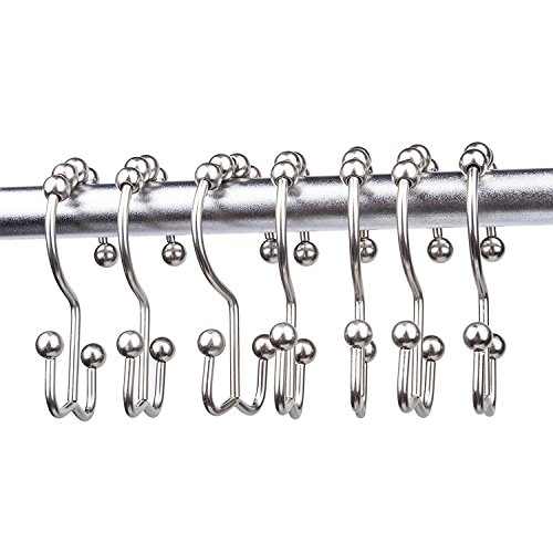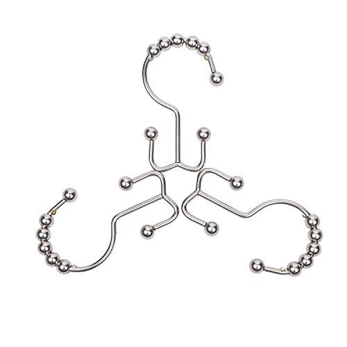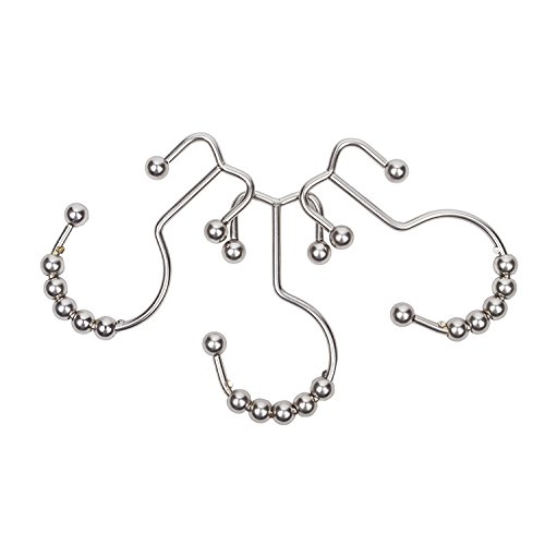 Imiee Shower Curtain Rings Hooks with Mills Metal Double Glide Polished Nickel , Set of 12