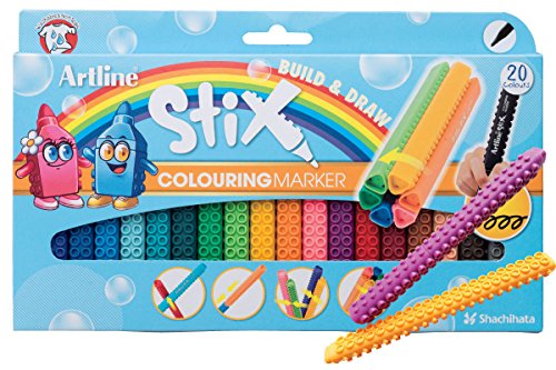-. Title : Artline Stix Coloring Markers 20 Assorted Color Set- 1.2mm Bullet Tip Coloring Markers- Non Toxic Artline Stix Build and Draw Connecting Markers