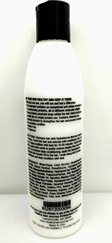 FINALLY...A protein treatment that does NOT leave the hair hard! Strengthens the hair and prevents breakage. With just one use, you will see and feel a difference. This treatment contains an exceptional and unique complex of structurizing proteins, all of different molecular weights. These proteins penetrate deep within the hair shaft producing benefits like no single protein can. Enriched with 10 amino acids, vitamins and botanical extracts. Strengthens each hair strand and protects the hair from harsh weather. Also provides sunscreen protection. Your hair will look and feel terrific. Superb for all hair types. For best results, use with other Hydratherma Naturals brand products. PH balanced. How to use: Shampoo hair with Hydratherma Naturals shampoo of choice. Gently towel blot hair and saturate hair with conditioner from root to tip. Cover head with plastic cap and use our Hair Therapy Wrap or sit under a warm dryer for 10-20 minutes, comb through with a wide tooth comb to remove tangles then rinse with water. Great for all hair types. For extreme deep conditioning, apply the Hydratherma Naturals Hair Growth Oil to the hair / scalp along with the deep conditioner. Cover with plastic cap and then deep condition with heat. INGREDIENTS: Water/Aqua, Cetyl Alcohol, Dicetyldimonium Chloride, Stearyl Alcohol, Dimethicone, Tocopheryl Acetate, Glycerin, Hydroxyethylcellulose, Hydrolyzed Soy Protein, Panthenol, Cetrimonium Chloride, Aloe Barbadensis Leaf Juice, Spirulina Maxima Extract, Silk Amino Acids, Hydrolyzed Rice Protein, Hydrolyzed Corn Protein, Retinyl Palmitate, Ascorbyl Palmitate, Phytonadione, Pyridoxine HCL, Biotin, Sodium PCA, Betaine, Sorbitol, Glycine, Alanine, Proline, Serine, Threonine, Arginine, Lysine, Glutamic Acid, Rosa Canina Fruit Extract, Panax Ginseng Extract, Centella Asiatica Extract, Fragrance/Parfum, Methyl Gluceth-10, PEG-45M, Triethanolamine, Citric Acid, Methylchloroisothiazolinone, Methylisothiazolinone. PARABEN FREEFeature