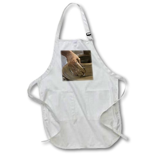 3dRose Nicaragua, Catarina. Pottery Wheel and Clay - SA14 Jme0127 - John and Lisa Merrill - Full Length Apron, 22 by 30-Inch, White, with Pockets (apr_86880_1)