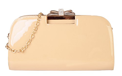 -. Brand : Rimen & Co -. Color : black -. Department : womens -. Feature : Due to monitor variations & measurements, the color & size may appear slightly different / Exterior: 11" W bottom x 5" H x 1" D, Shoulder Strap 28" Drop -. Model : LC-2314 LP-2841 Parent -. PackageQuantity : 1 -. ProductGroup : Shoes -. ProductTypeName : HANDBAG -. Size : Small -. Title : Rimen & Co. Patent PU Leather Gold & Solid Color Contrasts Removable Gold Chain Push Lock Clutch Purse LC-2314 LP-2841