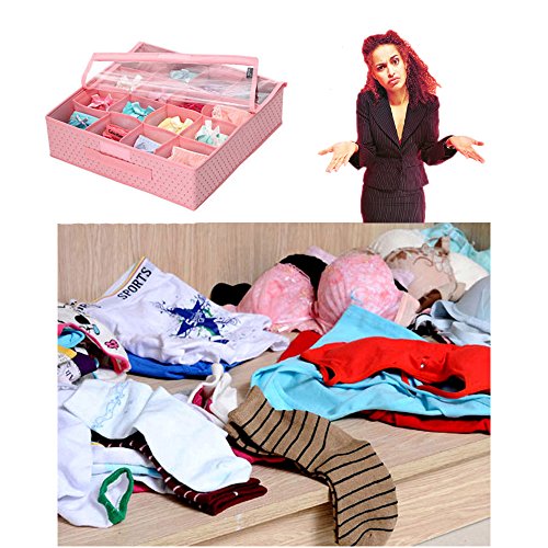 -. Title : 14x14x4.2 inches Multifunction Foldable Non-woven Storage Boxes Organizer Drawer with Divider (Pink)