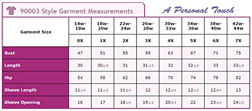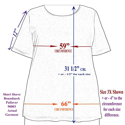 Binding : Apparel Product Description Women's plus size short sleeve round neck pullover knit top with a flared A-line body shape. Made in USA. Available in sizes 0X (14w-16w), 1X (18w-20w), 2X (22w-24w), 3X (26w-28w), 4X (30w-32w), 5X (34w-36w), 6X (38w-40w), 7X (42w-44w) 0
