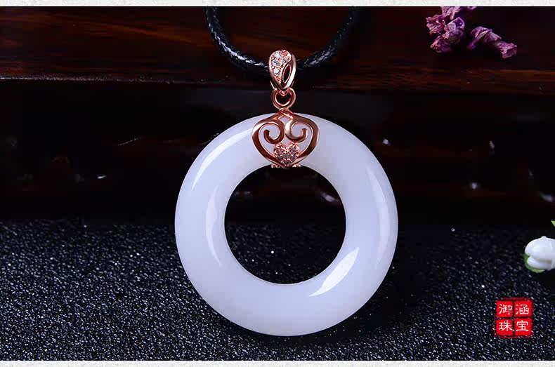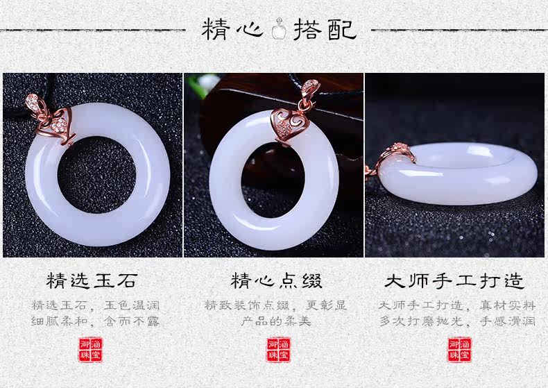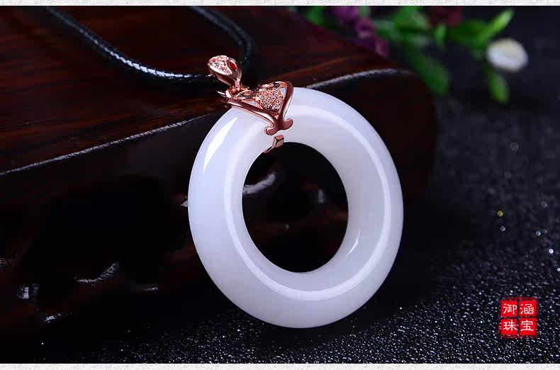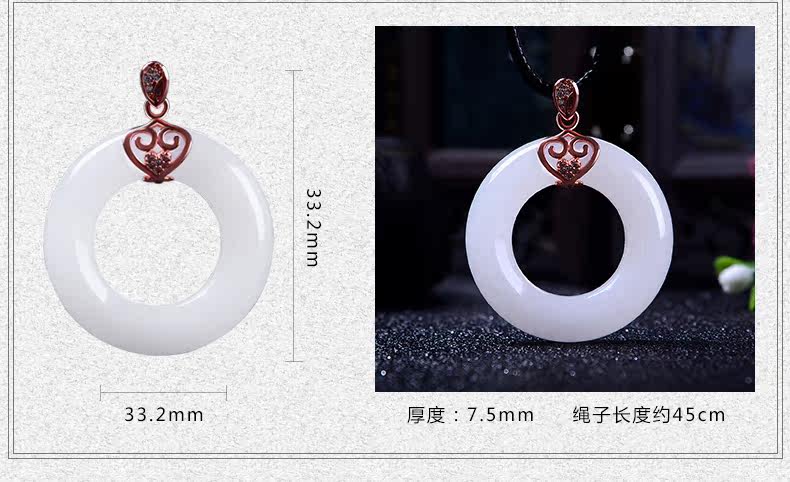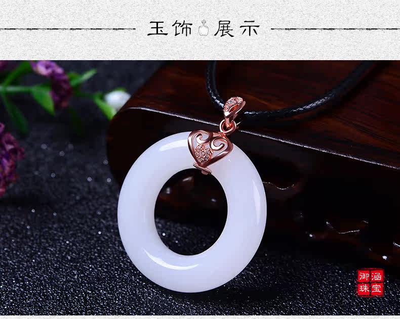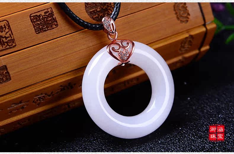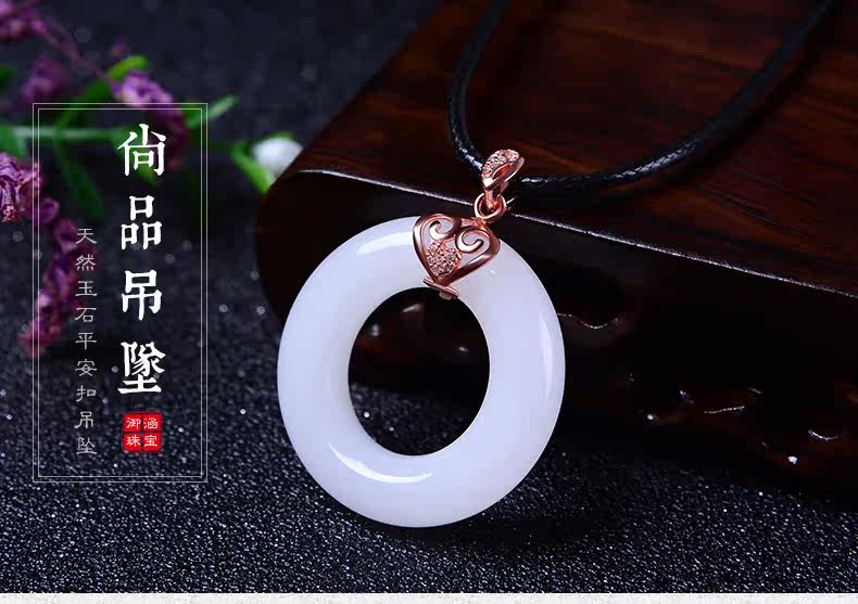 天然玉石平安扣吊坠男女款情侣玉坠项链白色玉吊坠玉佩送女友