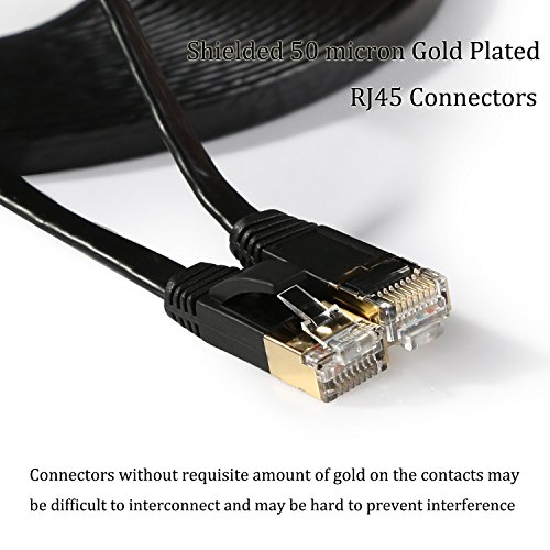 EpicDealz Premium Gigabit Ultra Flat CAT7 Ethernet Network Patch Cord Cable RJ45 10 Gigabit 600Mhz Lan Wire Cable STP for Modem, Router, PC, Mac, Laptop, PS2, PS3, PS4, XBox, XBox 360 (100ft, Black)