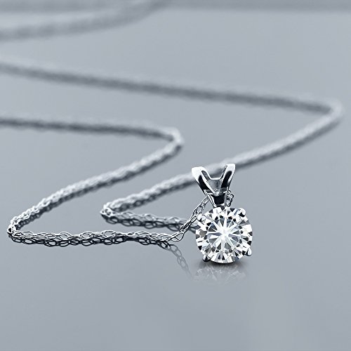Add a gorgeous and sophisticated glow to any outfit with our gorgeous Moissanite pendant. Perfect for dressing up or dressing down this gorgeous pendant is sure to be the center of attention on any ensemble. Featuring a gorgeous Moissanite stone this beautiful item comes with a complimentary 18 inch 14K White Gold chain. So that it's ready for gifting and ready to be worn. This item makes a gorgeous gift for Birthdays, anniversaries, weddings, and all other special occasions, and will be an item to cherish for years to come.This beautiful item is brand new and comes with complimentary gift packaging appropriately selected to match the item you purchased. The packaging ranges from dainty foam insert packaging to luxurious leather insert cherry wood boxes. Every order is fully insured regardless of value. This insurance protects you against damage or the loss of your item while in transit. The Shipping and Handling fees include the insurance so there is no need to pay separately for insurance.