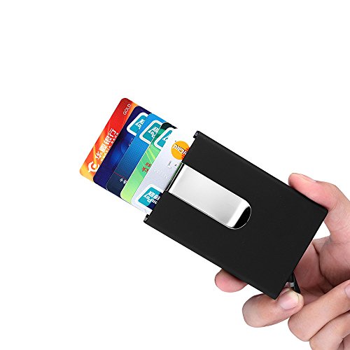 Binding : Apparel Product Description Safe and Functional Design RFID Protection: The specialist aluminum material is used to design the card holder wallet ensuring protection against Financial Fraud Identity Theft. It helps to keep your cards safe from unauthorized access and secures your personal information from being obtained. Spring action: Quick access to your credit cards with the simple press of a button. Cards are nicely spread for easy selection when ejected, stops the cards from damaging and falling out. Aluminum material?prevents cards become bent and brittle. And PU provides a comfortable touch for you. Money clip to keep your cash safe.? Fashion thin design make card holder looks more elegant and vintage. No problem to keep it in your front / back pocket. Enough space to protect 4 to 6 cards, perfect for business cards, credit cards, driver's license, and name cards. DESCRIPTION: Material: PU (outer) Aluminum(inner) Size: (L*W*H) 10*6.5*1.3 cm / 3.9*2.5*0.5 inch Weight: 100g package included: 1 x Credit Card Holder Case. PERFECT GIFT -- Perfect for all occasions, including Christmas and Birthdays as your friends and family will find it stylish and useful. It fits both men and women in an assortment of 3 colours, red, black and brown. NOTE: 1.There is no need to put the card into paper carboard before you use the holder.All of the metal card holder and cardboard cards are RFID blocking. Put the card into the holder straightly can also block the RFID scanning. 2. It works at a frequency of 13.56 MHz / 125 KHz. Our card holder can not block RFID signals from ID badge, some old hotel room cards, some building access cards.?