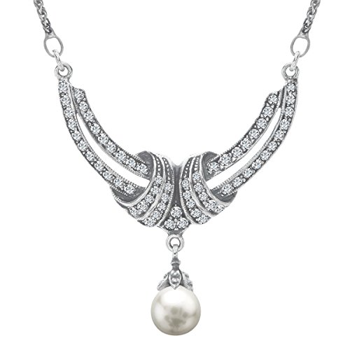 Van Kempen puts the finishing touches on a timeless silhouette. A bright, simulated shell pearl descends from a stylized crescent adorned with scintillating, round-cut Swarovski crystals in this elegant sterling silver necklace. Piece measures 1 3/4 by 1 1/2 inches with a total length of 17 inches. Pearls have been bleached to enhance their appearance.Feature