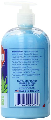 -. Binding : Health and Beauty -. Brand : Blue Stop Max -. EAN : 0788021839730 -. Feature : A premium-quality, highly effective topical analgesic designed to improve joint function and reduce body aches. / The only analgesic gel on the market with cetylated fatty acids proven by the Journal of Rheumatology to improve joint function and reduce body aches. / The only analgesic gel on the market with a pump making it easier and more convenient to use. / Has a light, peachy menthol aroma. -. IsAdultProduct : 0 -. Label : Blue Stop Max -. Manufacturer : Blue Stop Max -. MPN : 326282 -. NumberOfItems : 1 -. PackageQuantity : 1 -. PartNumber : 326282 -. ProductGroup : Health and Beauty -. ProductTypeName : HEALTH_PERSONAL_CARE -. PublicationDate : 2015-05-24 -. Publisher : Blue Stop Max -. ReleaseDate : 2007-03-07 -. Studio : Blue Stop Max -. Title : Blue Stop Max Massage Gel for Body Aches,16oz -. UPC : 785923352220 -. Warranty : Clavel Corporation offers a 100% buy back guarantee. If you are unsatisfied with the product ordered, we will return your money.