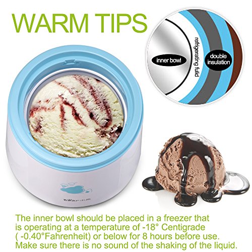 3, The inner bowl should be placed in a freezer that is operating at a temperature of -18°Centigrade ( -0.40°Fahrenheit) or below for 8 hours before use. Make sure there is no sound of the shaking of the liquid.