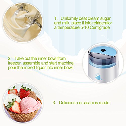 CONVENIENT AUTOMATIC OPERATION: Just press the button, sorbet machine makes delicious ice cream in 15 minutes, no labor-intensive stirring required. It's so easy and quick to make yogurt and dessert, very convenient.