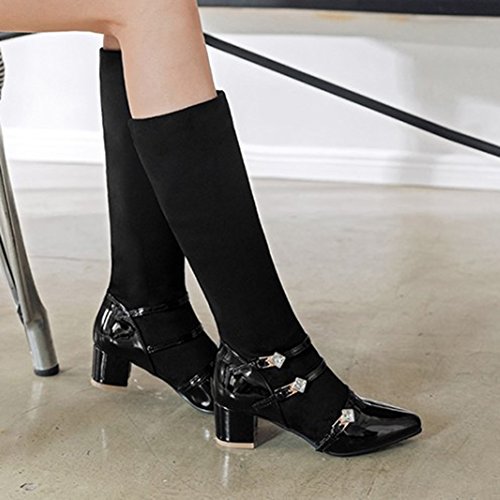 Binding : Apparel Product Description The pair of right shoes can make all the difference. The boots season comes. A pair of long boots is a must-have for a lady who want to be impressed in the crowed. If you're trying to get boots that will send a message with your every step, there's no finer footwear to add glamour close to you than these tall boots from Mofri. These boots don't whisper; they scream with their distinctive and trendy design. This pair of boots make you stand out in any crowd and are sure to heat things up no matter what you wear with them. The block heels raise your height and giving the shoes a chunky shape that is reflection of the latest trends. These shoes from Mofri is made from top quality vegan synthetic leather. Leave those boring basic boots behind. Make this pair boots as your fashion secret weapon and you'll be able to have some sexy appeal which will be the soul of your everyday ensembles. Order a pair in your favorite color! Can't decide? Why not get more? You'll still pay less than the price you would for a single designer pair elsewhere. We will make you always be on the cutting edge of women' s fashion. Mofri is a legal trademark which has registered in United Stated Patent Trademark Office. All right reserved. 0