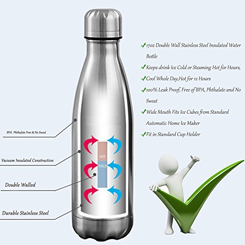 QUALIFIED STAINLESS STEEL VACUUM INSULATED BOTTLE: This bottle is made from top class 18/8 stainless steel,free of BPA and Phthalates,No leaking double wall vacuum insulated thermos