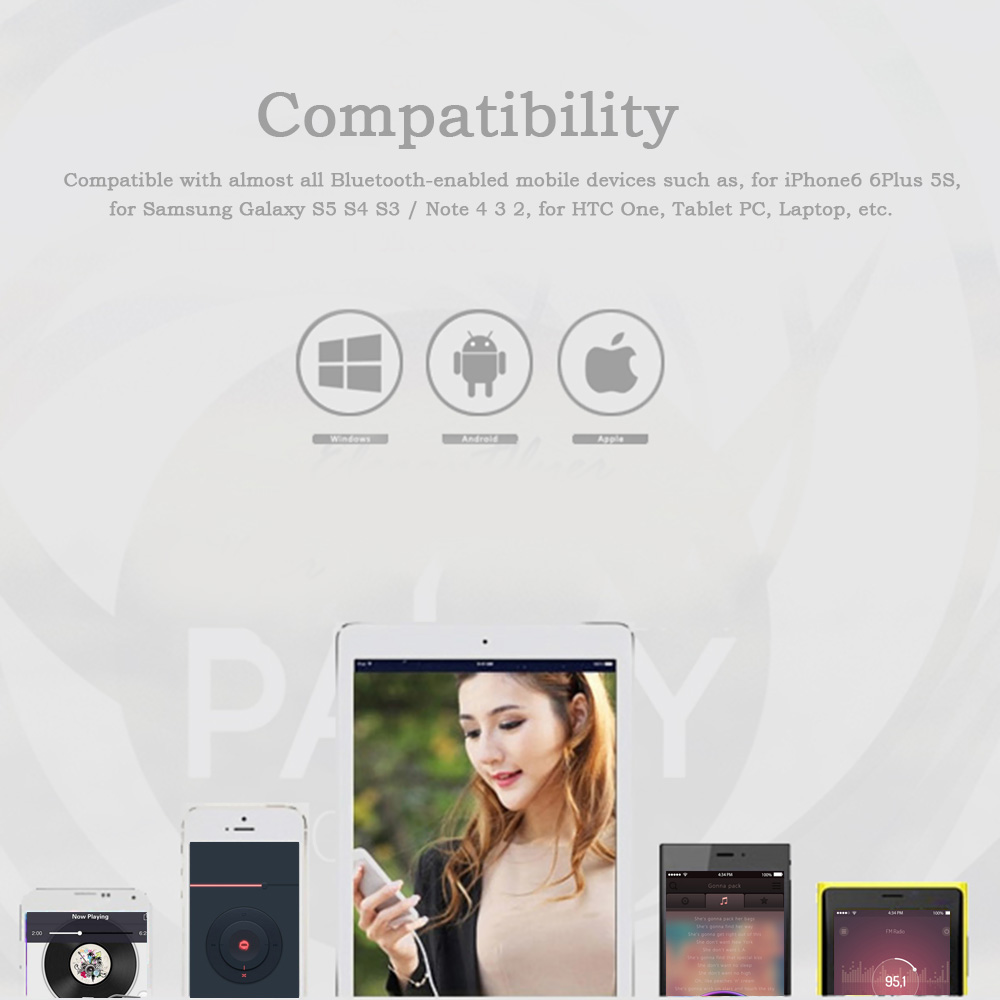Compatible with almost all Bluetooth-enabled mobile devices such as, for iPhone 6 6 Plus 5S, for Samsung Galaxy S5 S4 S3 / Note 4 3 2, for HTC One, Tablet PC, Laptop, etc. Integrated Multi-point Technology: Can simultaneously connect two smarts phone. So you can seamlessly switch between your business and personal phones.