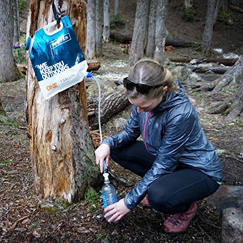 Weighing just 4.5 ounces, the 1-gallon bladder features a wide mouth cap that allows for fast and easy filling and a convenient carry handle. To set up a gravity-based filtering system, first fill the reservoir with water from any source -- a lake, stream, faucet, etc. -- and then hang the bag with the Mini connected below it (via the included hose) to let gravity do its work. Water will flow through the Mini to produce fresh, clean water for drinking and cooking.
