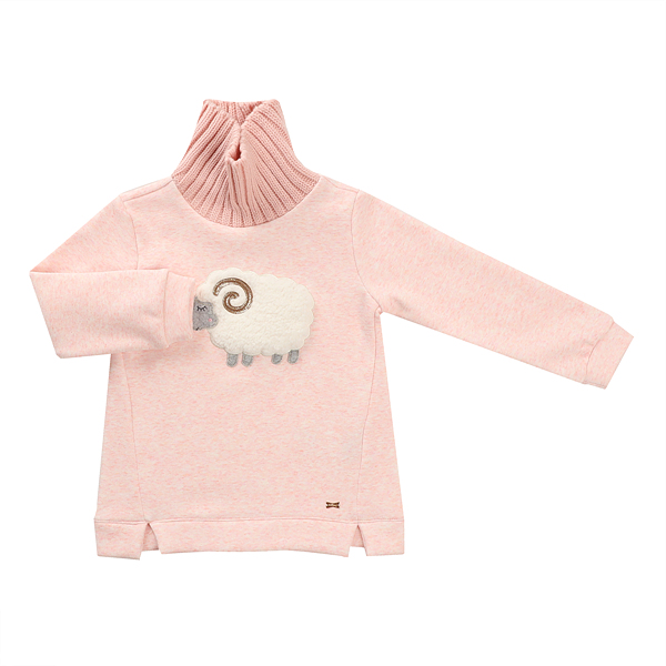 소재-겉감 : 폴리에스터 60 면 35 폴리우레탄 5 배색 : 아크릴 70 울 30 색상-핑크 사이즈-110,120,130,145,155,165상세설명-부분에 니트시보리를 사용한 터틀넥 아이템으로 너무나 고급스럽고 따뜻한느낌을 주며 양포인트가 너무나 사랑스러운 아이템이다.