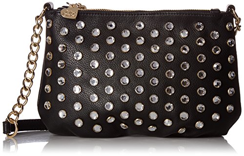 Betsey Johnson convertible crossbody bag with rhinestone studs and 2 zip pockets