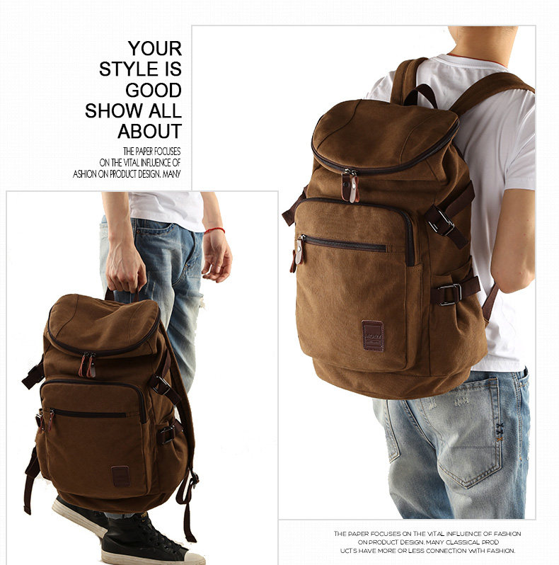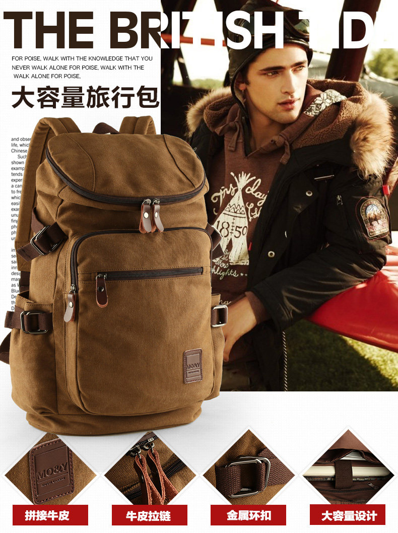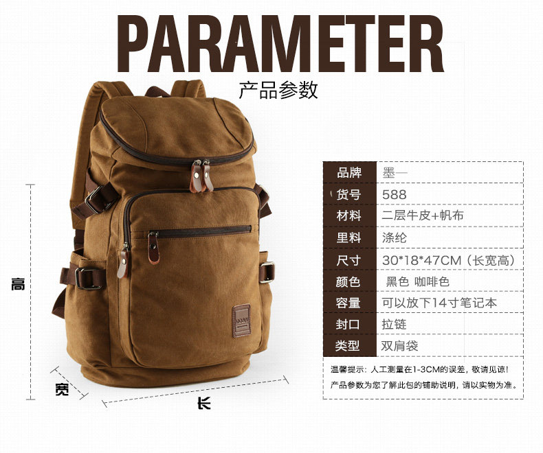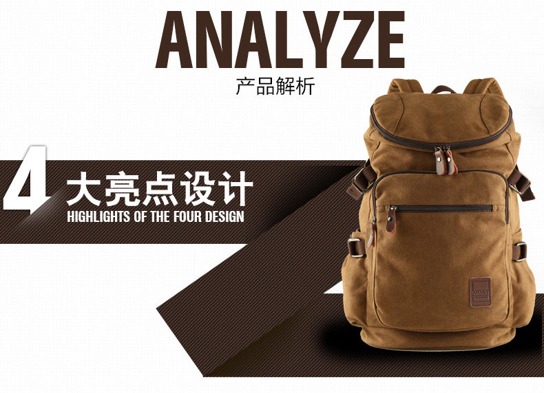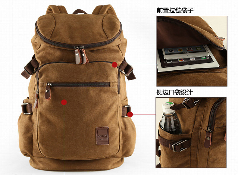 墨一潮流帆布包男包休闲双肩包中学生背包户外男士旅行包电脑包