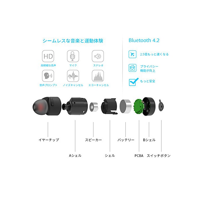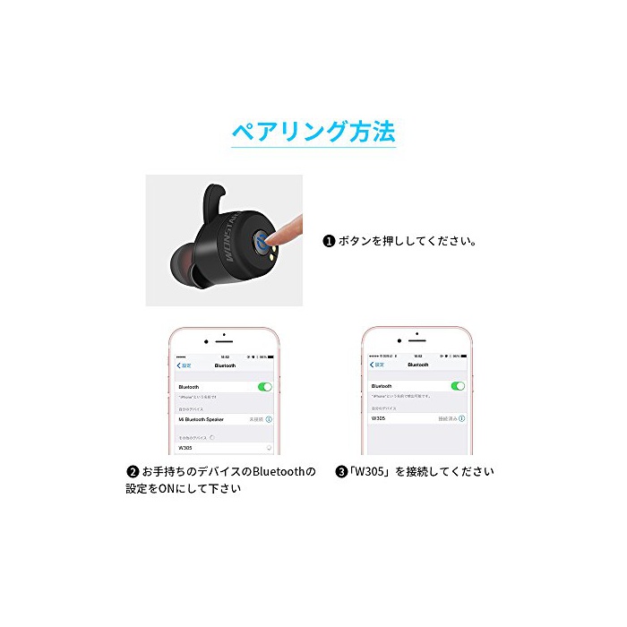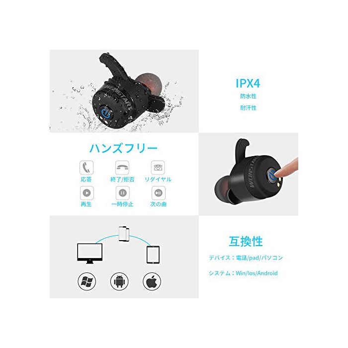 원본상품명: Wonstart W302 ワイヤレスイヤホン 無線bluetoothイヤホン IP4X防汗防滴 スポツイヤホン 超量ブルトゥスイヤホン マイク ハイレゾ Bluetooth 4.2