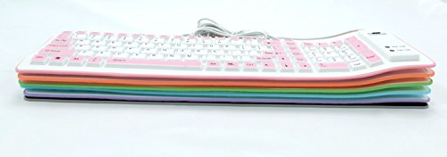 -. Feature : Flexible, Soft, Foldable, Roll-up, Silent, Waterproof, Dustproof, Lightweight, Portable and easy to store. Multiple function make it an extraordinary computer keyboard! / Soft silicone material: Made of high intensity and high elasticity silicone gel, non-toxic. Flexible material allow you to fold it or roll up freely, very handy and convenient to take with notebook, laptop and mac. / Waterproof and dustproof: No additional keyboard cover skin required, food crumbs or dust can be easily cleaned thoroughly. Clean the silicone keyboard with water, alcohol, or alcohol based disinfectant. / Silent Type: Soft material allows discreet silent typing experience. No typing sound design makes you have a quiet working environment and avoid disturbing others. At night, it can keep your family have a good sleep and also keep you do work seriously. / Warm Tips: To protect the keyboard and extend service life, pls do not do as following actions: stretch and twist keyboard; place heavy objscts on keyboard; press on rolled up keyboard.