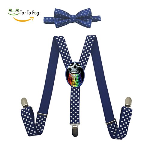 (Sans Bendy's Suspenders)/Accessories/Suspenders Cummerbunds/DIRECT FROM USA/Custom Skull~a~Day Y-Back Clip Suspender with Bowtie Set Adjustable for Kids