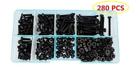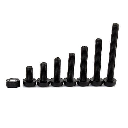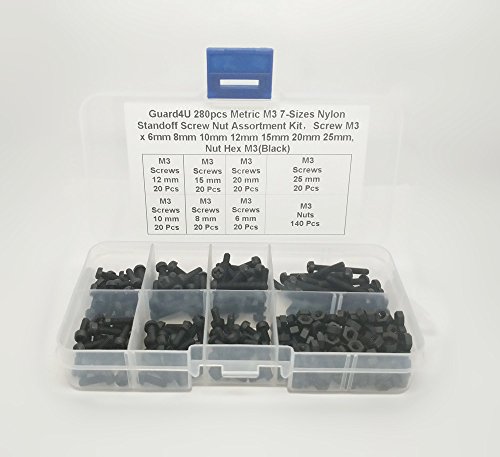 Guard4U 280pcs Metric M3 7-Sizes Nylon Standoff Screw Nut Assortment Kit,Screw M3x 6mm 8mm 10mm 12mm 15mm 20mm 25mm, Nut Hex M3 (Black)