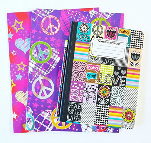 - Each set includes 1 wide-ruled composition notebook, 2 full-color portfolio folders with metallic accents, and 1 no.2 pencil.