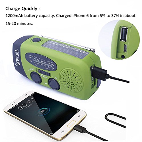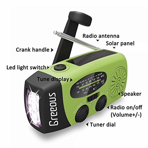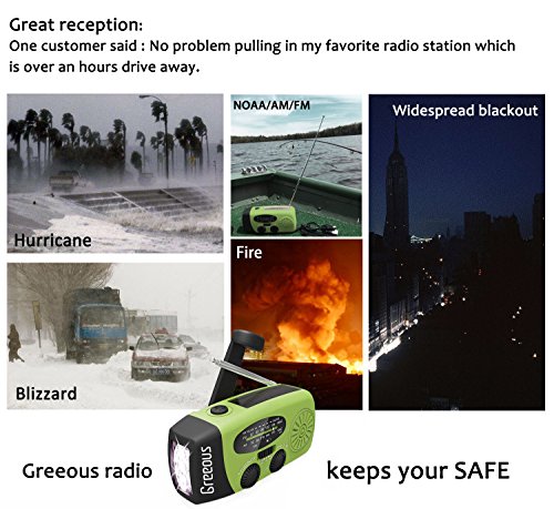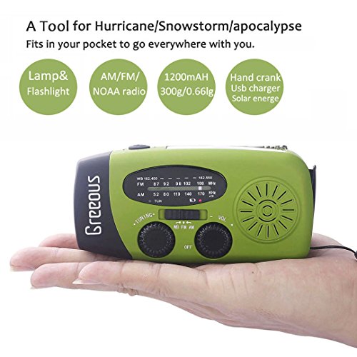 Hurricane Radio Emergency Radios,FM/AM/NOAA Weather radio with Hand Crank solar and Flashlight,1200mAh Charger for iphone/android,Emergency Kit,Family survival kit,Green,Greeous