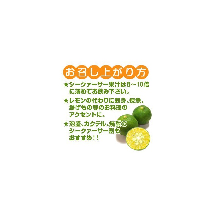 드시기 분(쪽,편): 시크《―사》과즙1에 대해서8~10배로 묽게해 마심 주십시오.또한레몬 대신에 생선회,소물고기,플라이 것 등의 요리에.아와모리,소주의 시크《―사》할,칵테일로도 부디.스트레이트에 마셔지는 경우는,산이 강한위?“탠?沮行×痍졀 ±箏웰㉯獵짙??)느낌을 붙여 하십시오.