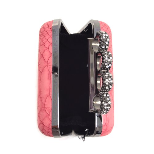 -. Title : Women's Petite Snakeskin Faux Leather Clutch with Knuckle Ring Handle