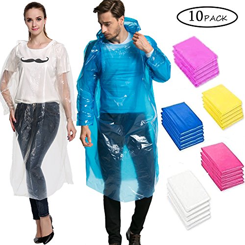 Samhe Rain Ponchos Disposable Universal Size Emergency Waterproof Rain Coat With Hood Five Different Colors (10 Packs)