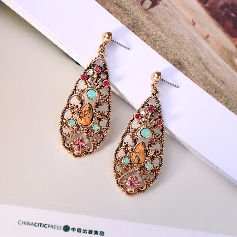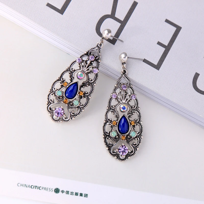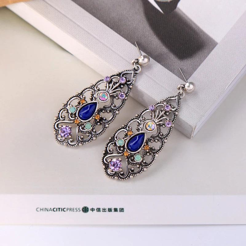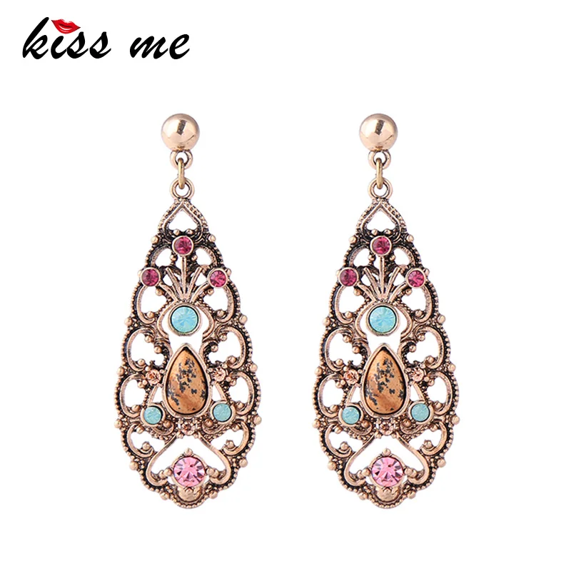 Production name ::KISS ME New Synthetic Stone Crystal Hollowed Water Drop Big Earrings