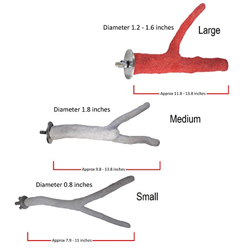 Comes in 3 sizes: ? Small - 0.8 inch diameter, 8-11 inch length for smaller birds ? Medium - 1.4 inch diameter, 10-14 inch length for medium sized birds ?Large - 1-1.5 inch diameter, 12-14 inch length for larger birds