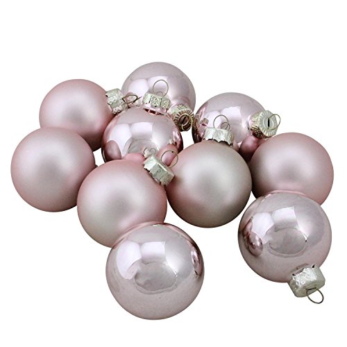 NORTHLIGHT WY00727 Baby Pink Glass Ball Christmas Ornament Set, 1.75"