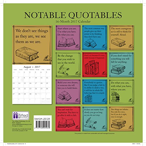 Inspirational Quotes, Notable Quotables 2017 Monthly Wall Calendar, 12" x 12"