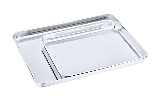 P&P Chef Stainless Steel Baking Sheet Toaster Oven Pan Set of 2, which is made of high quality pure stainless steel without chemical coating, brings you a healthier cooking experience. Set of 2, meet most of your daily small baking needs, The superior mirror finish make cleaning a breeze and Dishwasher Safe.
